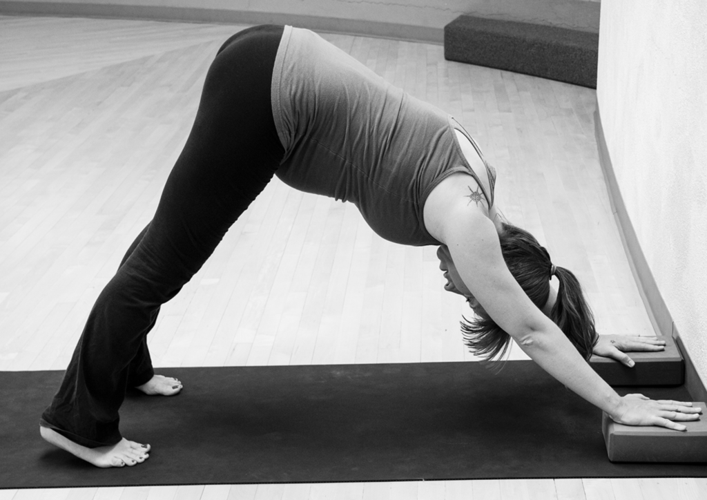 - How to use a block: Place a block under each hand, set at the medium height. This extra lift reduces strain on the wrists and shoulders, helping you to lengthen your spine fully.